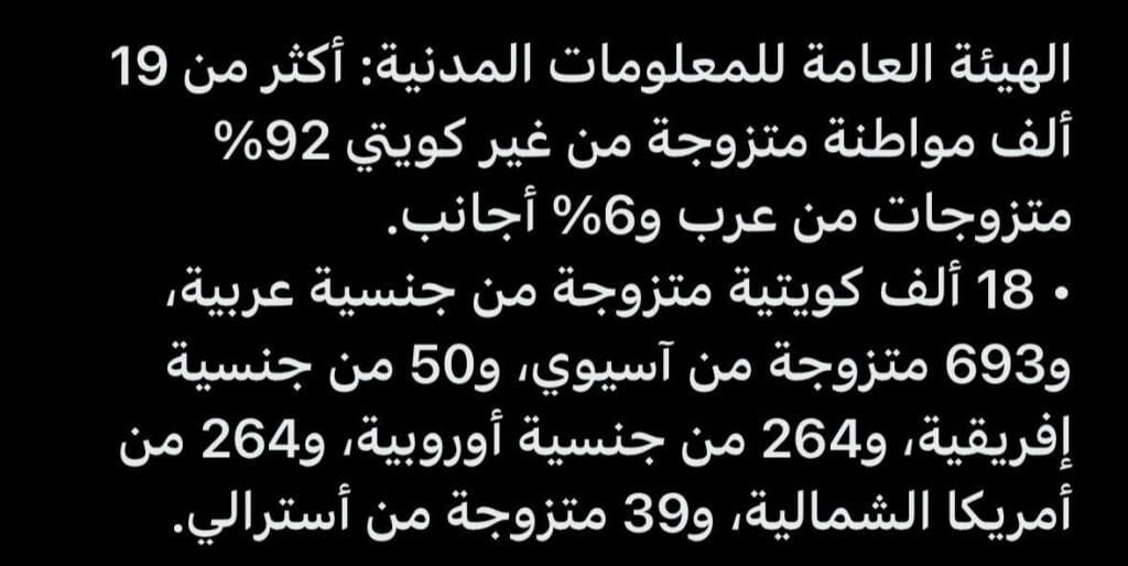 أكثر من 19 ألف مواطنة متزوجة من غير كويتي